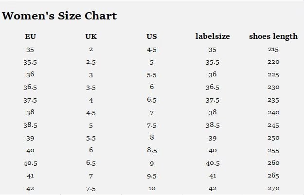 Tips: Please choose the shoe size according to the shoe length.